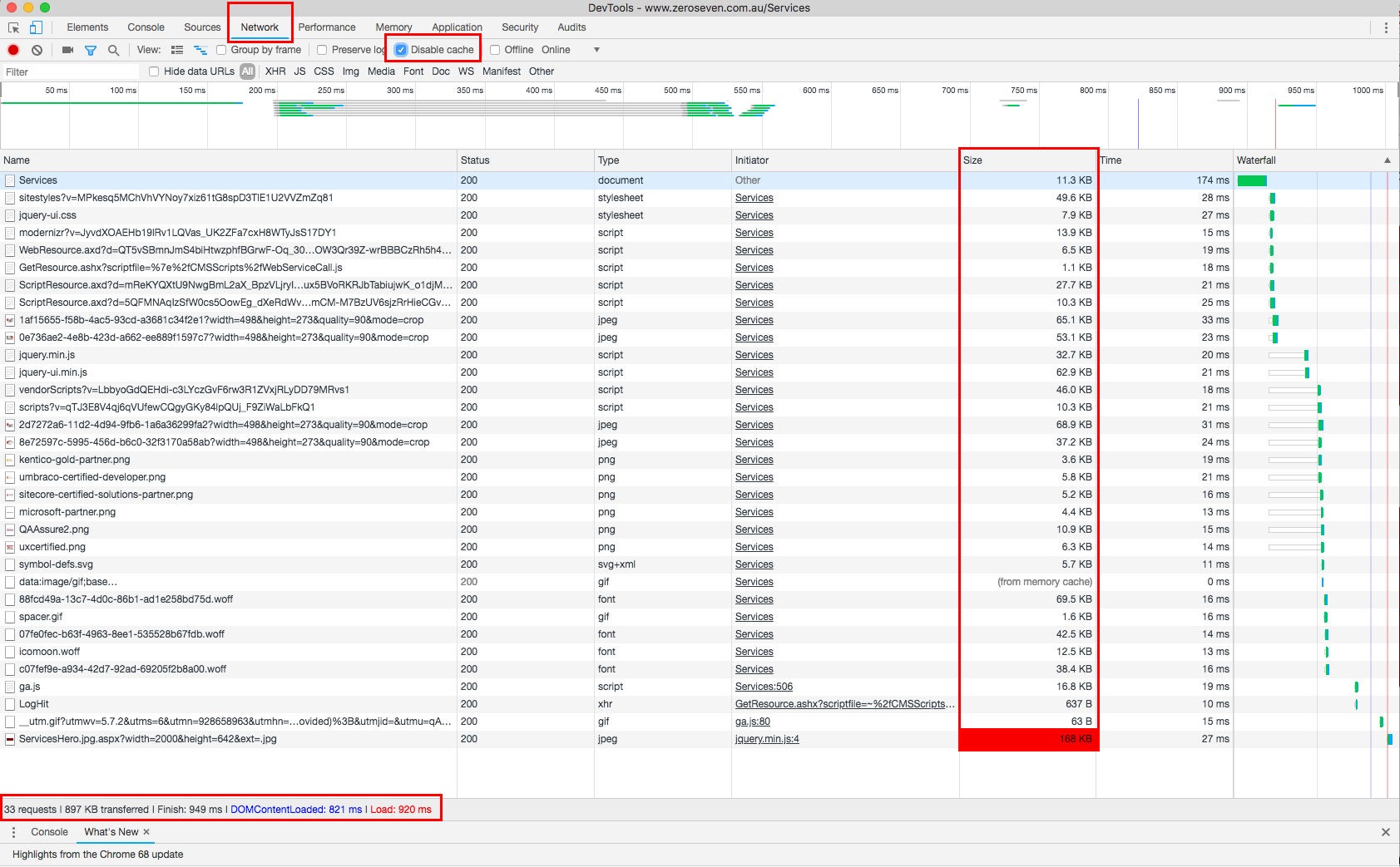 Chrome Developer tools - Network tab