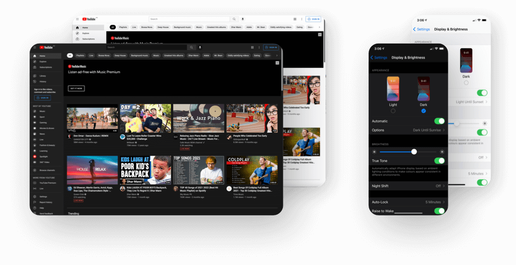 Regardless of the health benefits (or lack thereof), it’s clear that many users simply have a subjective preference for the aesthetics of dark mode. Twitter was forced to roll out a ‘true’ dark mode called ‘Lights out’ after users complained that its dark mode wasn’t dark enough, and Spotify went so far as to make a light-on-dark colour scheme its default, after test users overwhelmingly favoured the way that album artwork and navigation buttons popped against dark backgrounds.