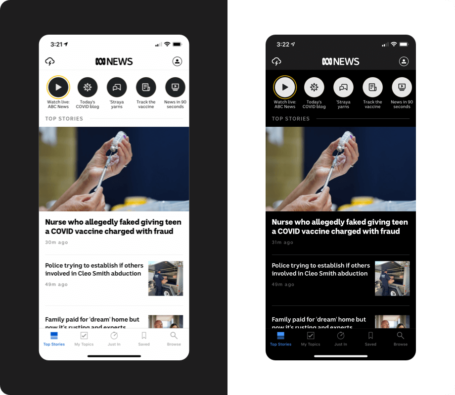 Apps that make effective use of dark mode tend to give users the ability to either follow the preference of their operating system and switch from light to dark as day turns into night, or override their device settings and control the switch directly through the app. In Australia, for instance, that’s how news apps like ABC and SBS have enabled the feature, which is intended to keep users scrolling through their feeds long into the night. (A list of apps that support dark mode can be found here.)