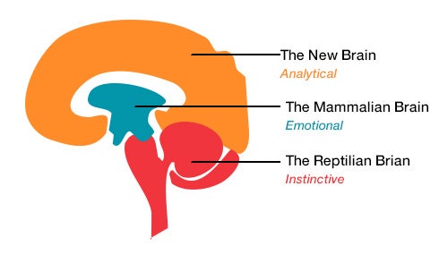 The instinctive brain, controlling our primal desires - the need for keeping safe, food & drink and sex.