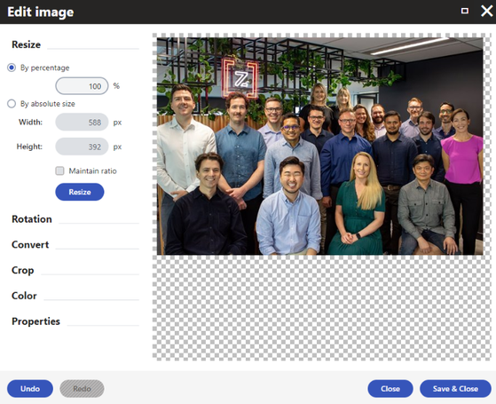 Kentico offers content editors the ability to edit their images directly within the media library. Through the Kentico administration interface, the following options are available for editing media: